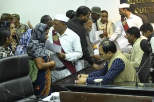 बिलासपुर, 13 जनवरी 2026/कलेक्टर संजय अग्रवाल ने साप्ताहिक जनदर्शन में आज दूर-दराज से पहुंचे ग्रामीणों की फरियाद सुनी। उन्होंने जनदर्शन में आए प्रत्येक व्यक्ति से उनका आवेदन लिया और आवश्यक कार्रवाई के लिए अधिकारियों को निर्देशित किया।