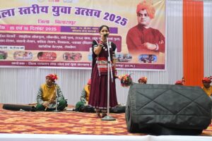 बिलासपुर, 15 एवं 16 दिसम्बर 2025 जिला प्रशासन, खेल एवं युवा कल्याण विभाग के तत्वावधान में जिला स्तरीय युवा महोत्सव, 2025 का आयोजन इंडोर स्टेडियम, बहतराई बिलासपुर में सफलतापूर्वक सम्पन्न हुआ। युवाओं को कला एवं संस्कृति के क्षेत्र में मंच प्रदान के उदेश्य से प्रतिवर्ष आयोजित होने वाले इस महोत्सव में जिलेभर से लगभग 300 प्रतिभागी द्वारा भाग लिया गया। कार्यक्रम के समापन अवसर पर बिलासा कन्या महाविद्यालय के प्राचार्य श्री एस. आर. कमलेश के द्वारा पुरस्कार वितरण किया गया। इस अवसर पर विभाग की ओर से ए. एक्का सहायक संचालक, सुशील अमलेश खेल अधिकारी, कुलदीप सिंह बरार, एच.पी.एम., खेलों इंडिया, सुशील गौरहा, क्रीड़ा अधिकारी, हरगुलशन सिंह, राकेश टोप्पो, दिल कुमार राठौर, वरिष्ठ प्रशिक्षक, दीपिका कर, अंजनी पटेल एवं अन्य विभागीय अधिकारी और कर्मचारी उपस्थित थे।
